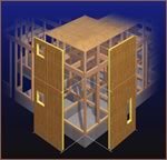 SW工法住宅は、壁面にSWパネル、床に28mm合板などを使用して強固な箱型を構成する高耐震のモノコック構造。台風や地震などの外力が接合部などに集中しにくく建物全体に分散するため、ひずみやくるいに強さを発揮します。