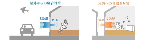 80デシベルの不快な騒音も、50デシベル程度まで減衰できます