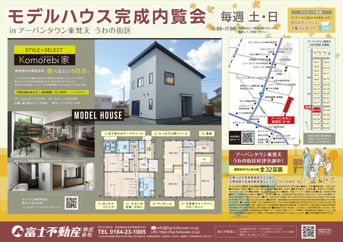 弊社分譲地アーバンタウン東梵天うわの街区にてモデルハウス完成内覧会を開催します。