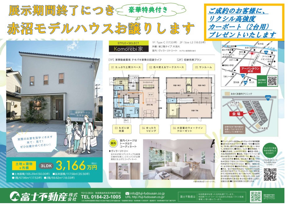 展示期間終了につきモデルハウスお譲りします